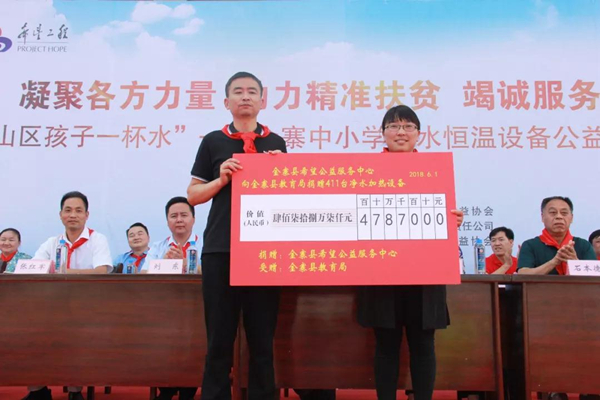 “六一”兒童節(jié)這一天,金寨縣的孩子們收到了極有意義的禮物。共青團金寨委員會、金寨縣希望公益服務中心、榮事達水工業(yè)集團共同發(fā)起的“給山區(qū)孩子一杯水”——金寨中小學凈水恒溫設備公益項目捐贈儀式在金寨金江實驗學校落幕,至此,持續(xù)兩年、覆蓋全縣所有中小學校的凈水恒溫設備公益項目畫上圓滿句號。該公益善舉得到了社會各界愛心人士的積極參與,受到學生、學校、家長們的一致好評,被全國文明辦評為“全國百佳公益項目”。