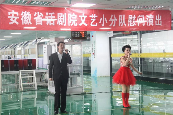 爵士舞《我的新衣》、歌曲《相親相愛》、朗誦《城市的描繪師》、團舞《歡聚一堂》、創意近景魔術、特色黃梅戲等形式多樣的精彩節目將傳統藝術與現代藝術創新融合,揚時尚蓄古韻,給人以耳目一新的全新視聽體驗,贏得了大家的連連掌聲。值得一提的是,生產制造中心總經理孫曉峰參與了黃梅戲的互動表演,孫總嘹亮專業的唱腔,臺下觀眾無不為其喝彩。表演過后,大家仍意猶未盡,津津樂道。技術員小王說道:“這次表演我感受到了政府和安徽省話劇院對我們普通職工群眾的關懷,心里很暖,可以鼓足干勁投入工作了。”