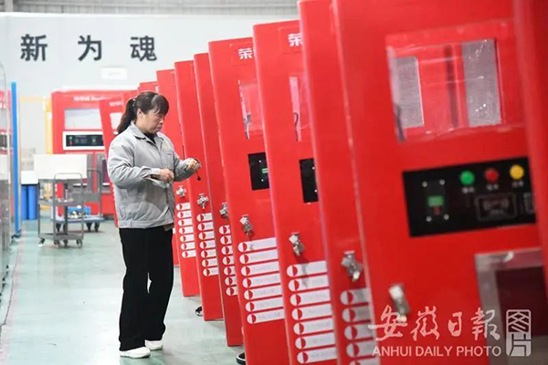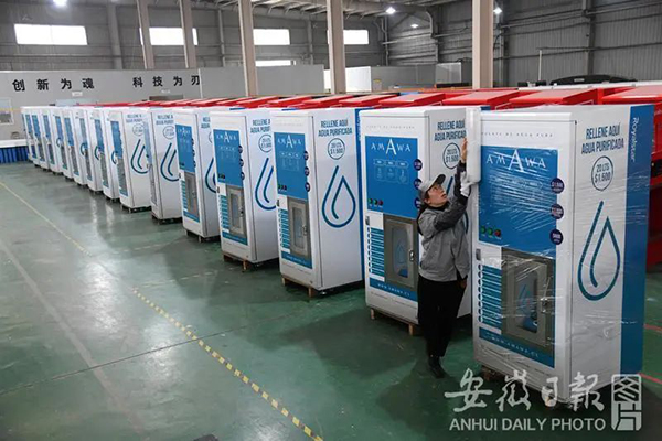 員工在自動(dòng)售水機(jī)生產(chǎn)線(xiàn)上作業(yè)