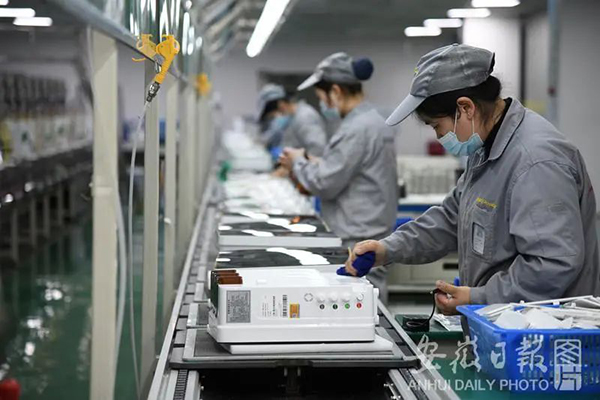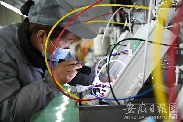 員工在家用凈水機(jī)檢測(cè)線(xiàn)上作業(yè)