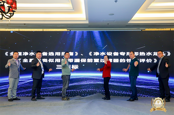 本次活動由中國商報社、中國電子節能技術協會主辦,中國直飲水媒體中心、中國電子節能技術協會環境電器專業委員會聯合承辦。中國電子節能技術協會名譽理事長張恩惠、中國電子節能技術協會理事長黃建忠、中國標準化研究院資環分院節水室主任白雪、原國家標準化管理委員會巡視員鄧瑞德、中國商業聯合會副會長王耀、中國疾病預防控制中心環境與健康相關產品安全所高級研究員白雪濤、中國商報研究院副院長張家銘、江蘇省凈水設備制造行業協會秘書長顧久傳、中國電子節能技術協會環境電器專委會秘書長胡繼民等領導嘉賓以及行業名企代表出席,共商行業發展未來。