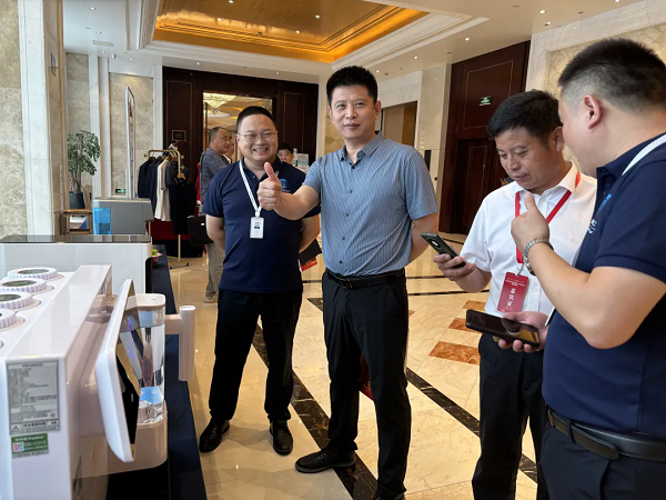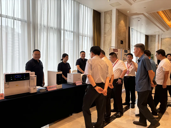 與會嘉賓紛紛駐足,親自體驗了榮事達冷熱一體機、大通量凈水機以及富氫水機等高科技產品。特別是當大家品嘗到經榮事達食材凈化機殺菌處理后的水果后,都紛紛表示口感絕佳,與僅用清水清洗的水果相比,更加清爽可口。