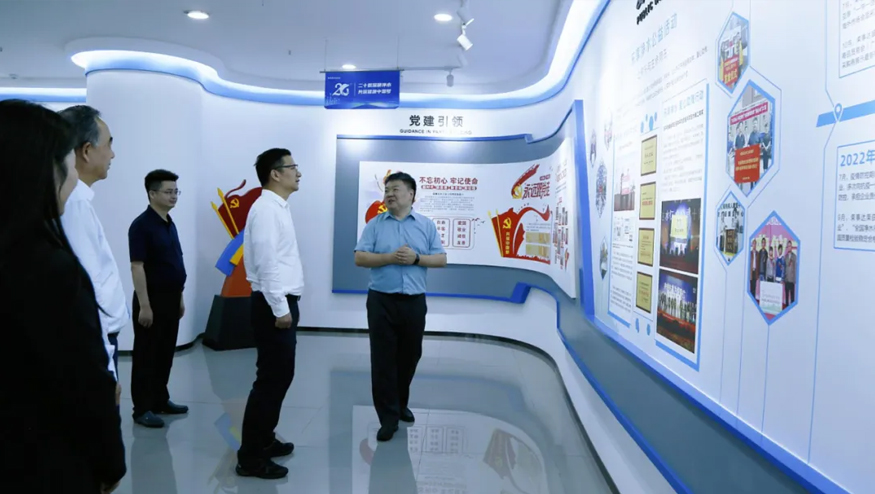 在智慧水世界展廳,董事長(zhǎng)雷鳴向領(lǐng)導(dǎo)一行詳細(xì)介紹集團(tuán)的發(fā)展歷程、公益貢獻(xiàn)及黨建引領(lǐng)下的企業(yè)文化等。