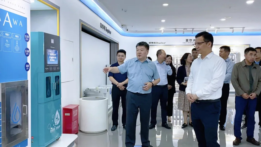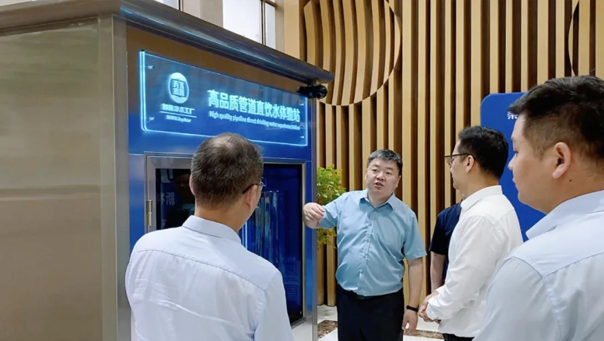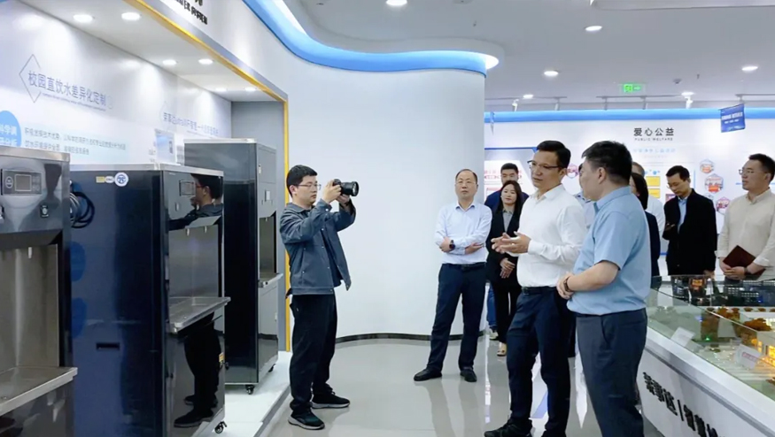 領(lǐng)導(dǎo)一行參觀了解集團(tuán)的全屋智慧凈水項(xiàng)目、社區(qū)智慧飲水項(xiàng)目以及校園直飲水項(xiàng)目等。