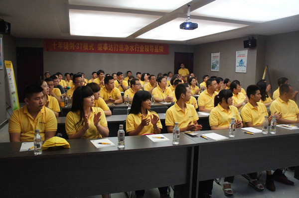 •     7月19-20日,榮事達凈水機高端新品發布會及3T營銷模式培訓會盛大舉行,百余位學員從全國各地奔赴榮事達水工業公司,學習、了解高端新品特性,實地考察公司生產規模及研發實力,并進行了3T創新營銷模式的實戰培訓。